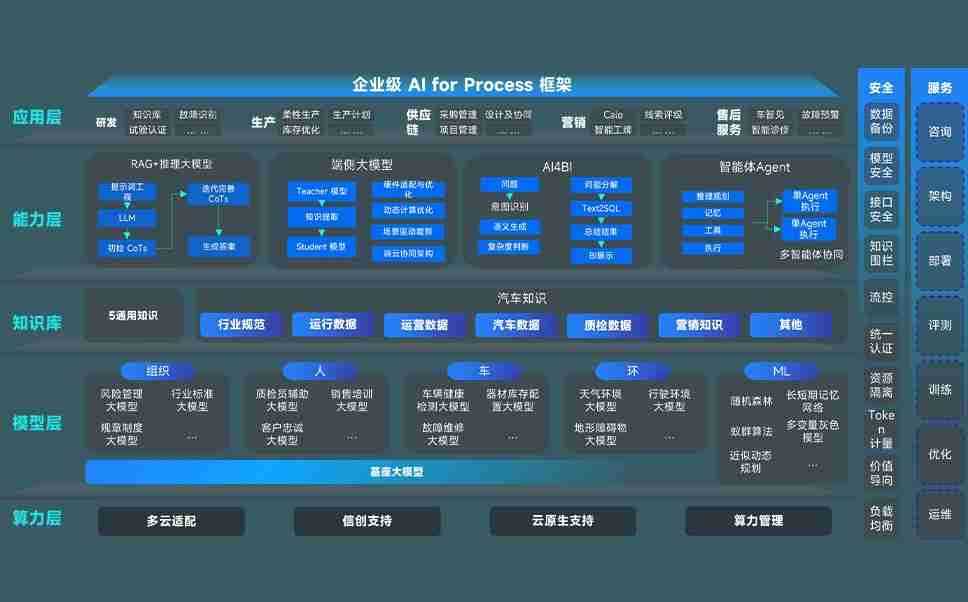 益达娱乐问学智车解决方案是一套基于AI技术的汽车行业智能化系统,,覆盖从底层算力到顶层AI应用的全栈方案。。方案由算力层、、、、模型层和应用层组成:算力层,,方案支持多种一体机配置,,具备云端灵活部署、、、、多云适配以及动态优化计算资源的能力;模型层,,益达娱乐问学平台版提供了企业级AI应用一站式构建与管理平台,,,,支持基于后训练强化技术的汽车企业专属模型的训练、、、评测和运营;应用层,,,,益达娱乐问学DeepSeek版提供包括超级员工、、、、智能招采、、智能营销、、智能客服、、、AI for BI等一系列解决方案,,,可助力汽车行业实现数字化转型,,,,让管理更智能、、、响应更敏捷。。