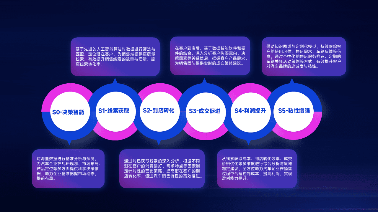 通过拓宽潜在客户来源、、、优化线索分配并提高到店转化率,,,以增强销售效率。。。。同时,,,利用线索数据不断优化分析模型,,,,有效提升转化率,,,,扩大营销影响力。。